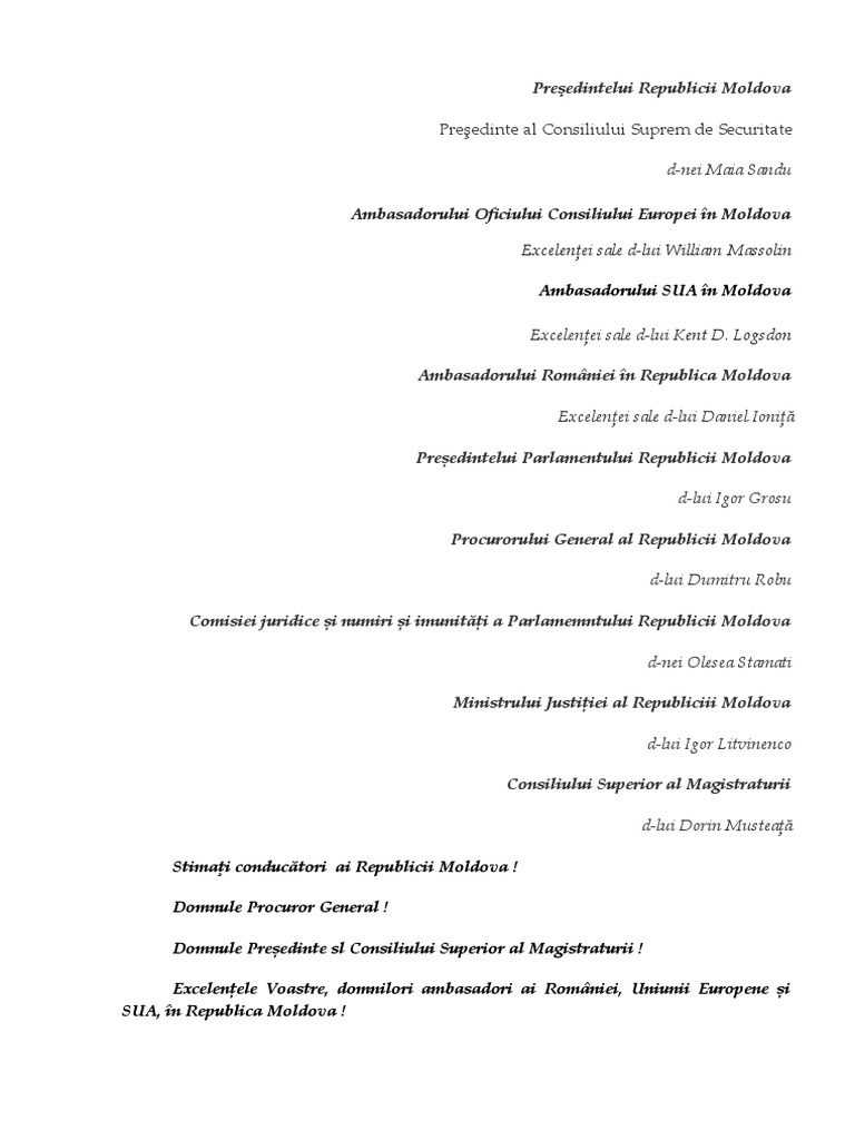 Domnule Președinte sl Consiliului Superior al Magistraturii !