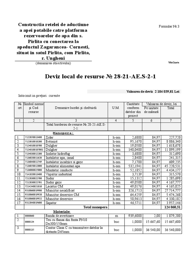 crt. şi Cod Denumire lucrări şi cheltuieli U.M. conform Pe unitate Total
