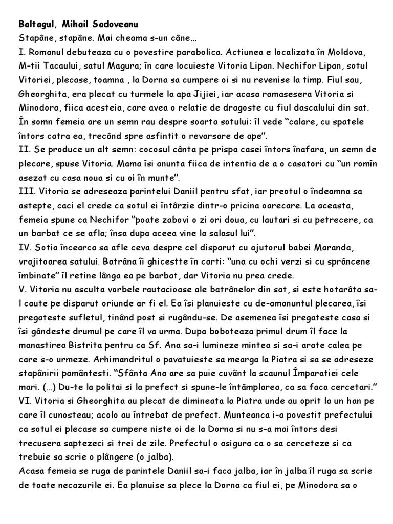 I. Romanul debuteaza cu o povestire parabolica. Actiunea e localizata în Moldova,