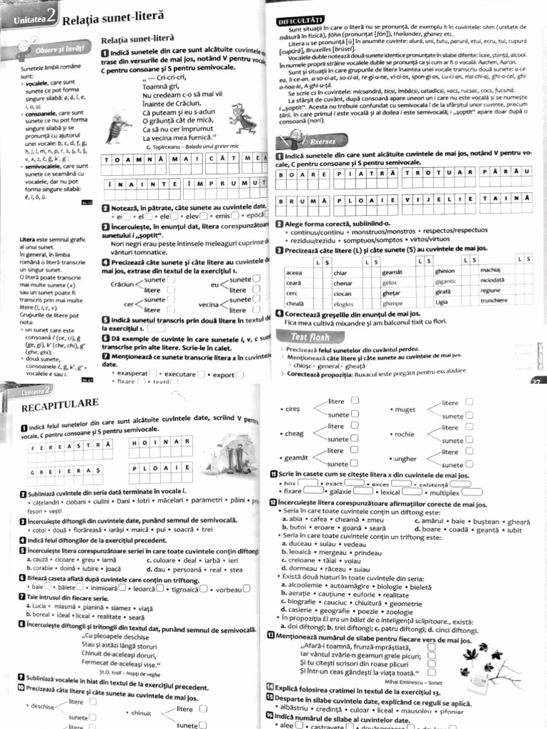 român o literä transcrie O Precizeaz câte sunete i câte litere au cuvintele d LS LS LS LS