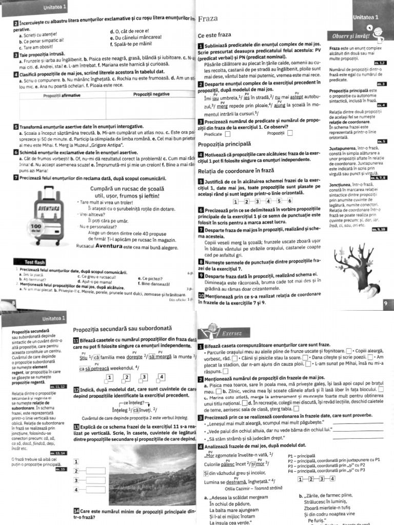 propozitii, dup modelul de mai jos. PV