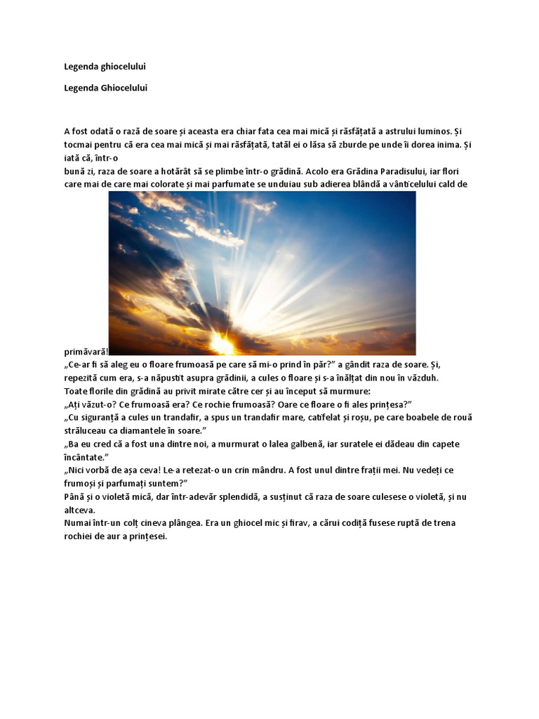 Dar nu a fost numai atât. Prințesa-Rază de soare a venit lângă ghiocel și i-a spus așa: