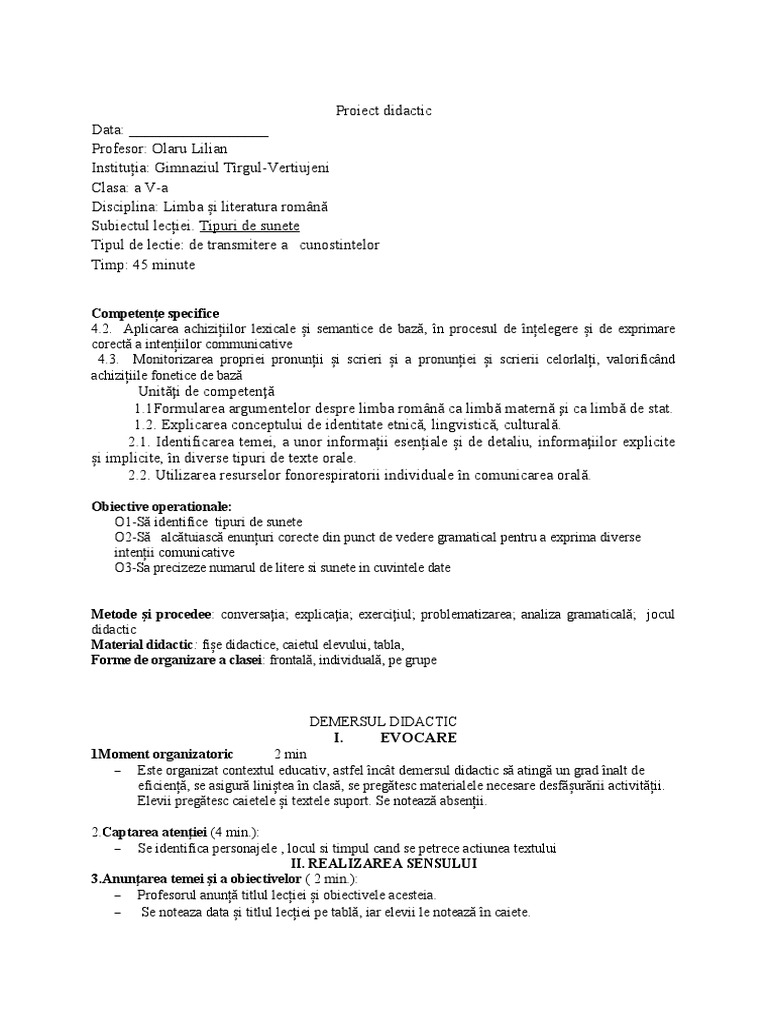 Proiect didactic