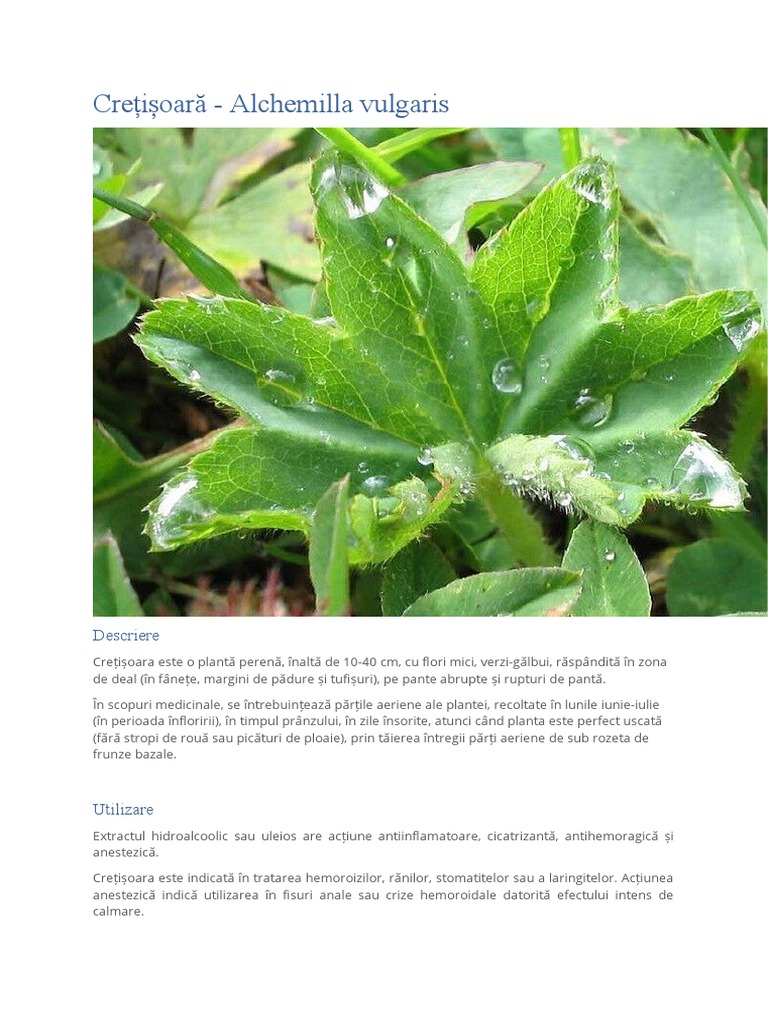 Extractul hidroalcoolic sau uleios are acțiune antiinflamatoare, cicatrizantă, antihemoragică și