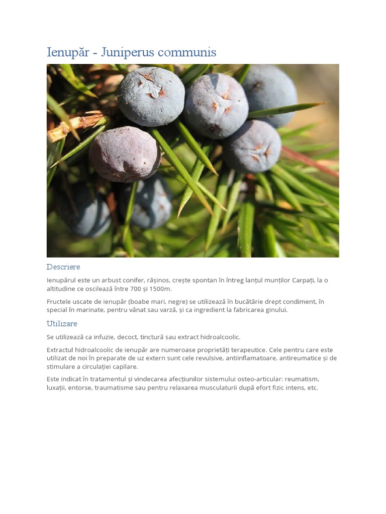 Ienupărul este un arbust conifer, rășinos, crește spontan în întreg lanțul munților Carpați, la o