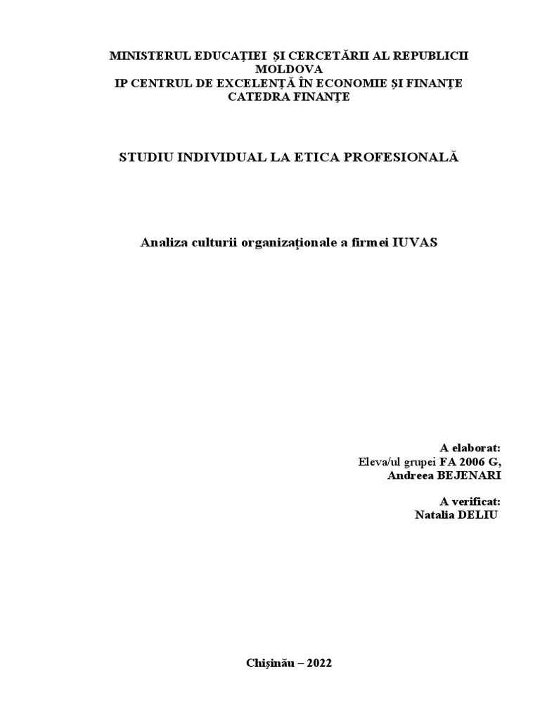Analiza culturii organizaționale a firmei IUVAS