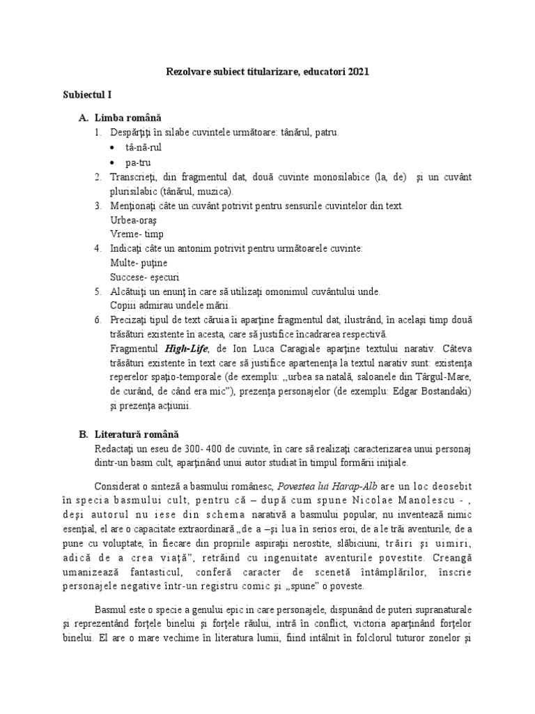 Fragmentul High-Life, de Ion Luca Caragiale aparţine textului narativ. Câteva