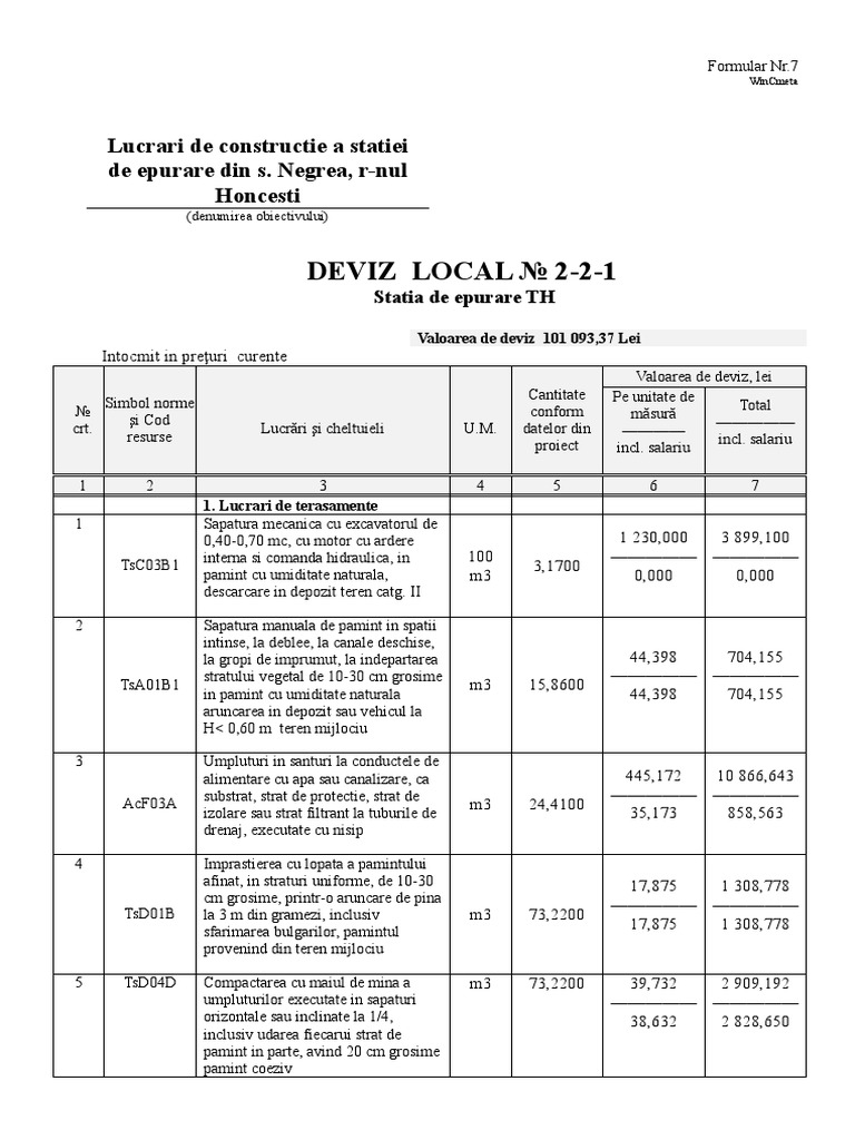 crt. Lucrări şi cheltuieli U.M. datelor din ————