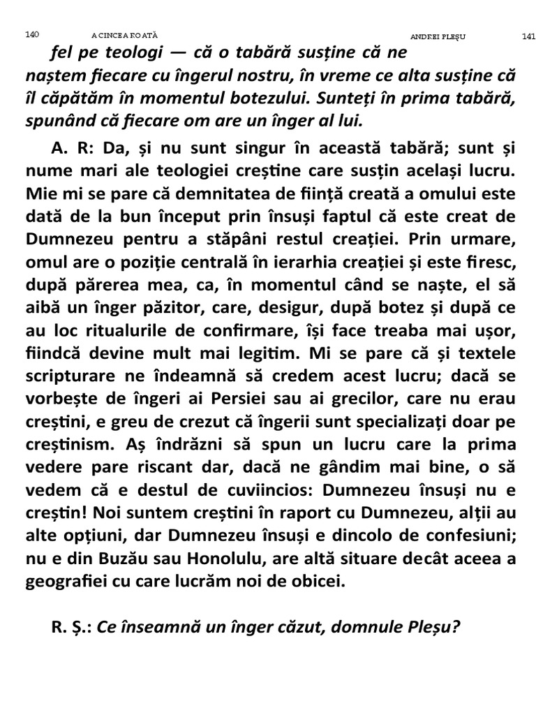 R. Ş.: Spuneţi undeva în carte că rostul îngerilor este să