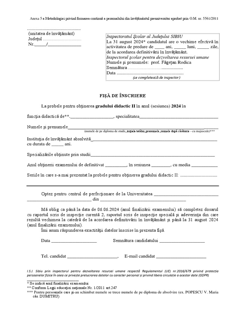 I.S.J. Sibiu prin inspectorul pentru dezvoltarea resursei umane respectă Regulamentul (UE) nr.2016/679 privind protecția