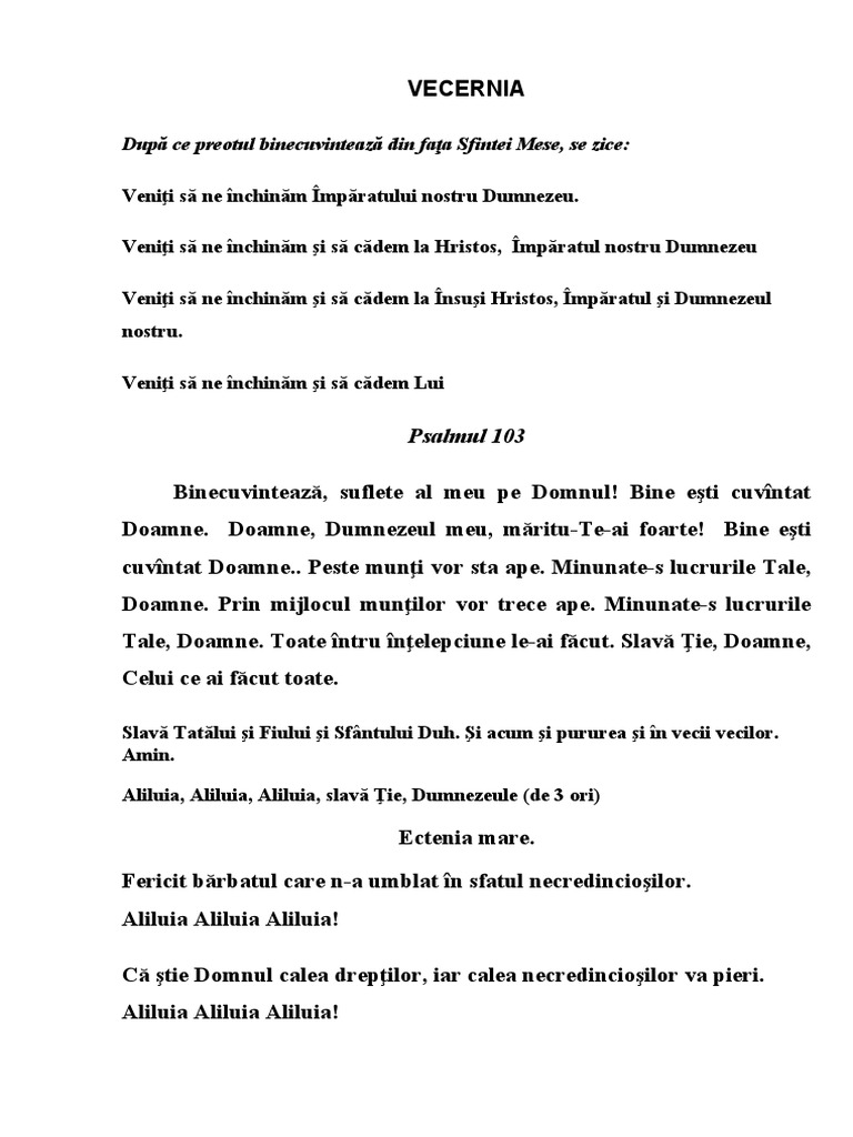 vecii vecilor. Amin. Doamne miluieşte (3 ori). Întru numele Domnului Părinte