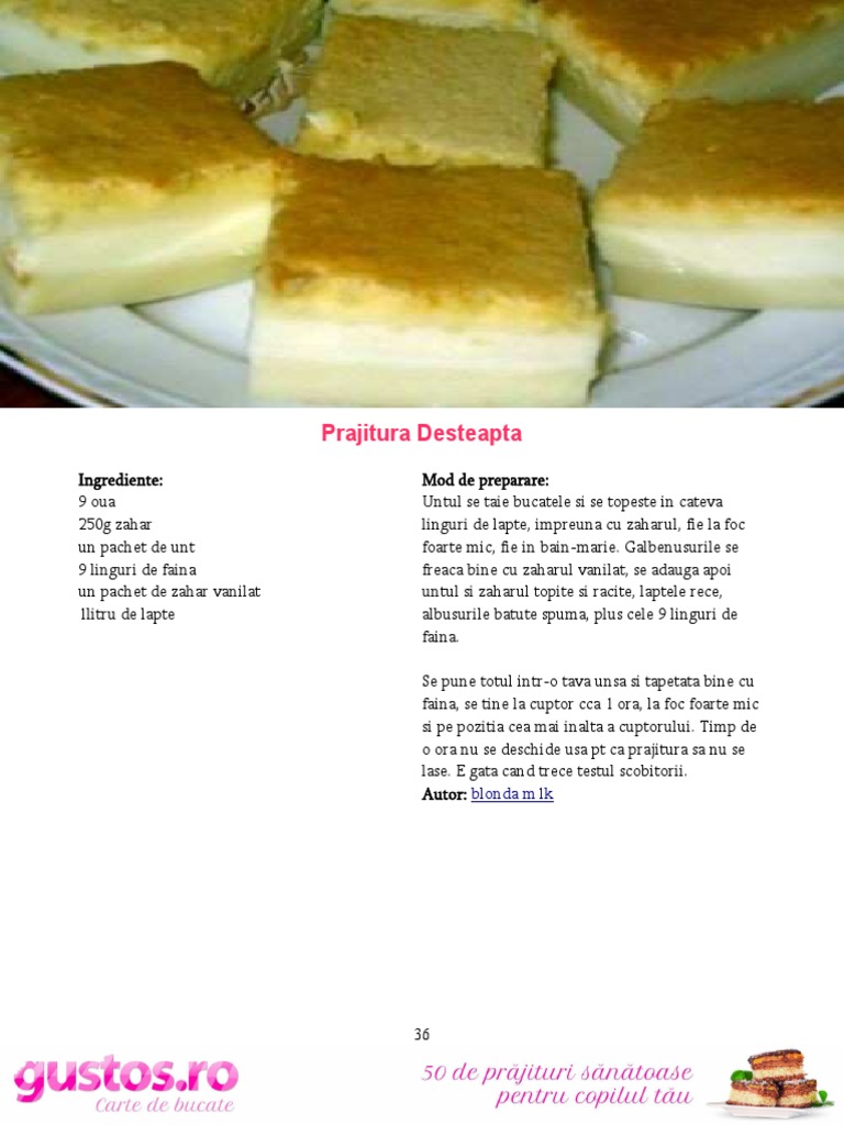 Mod de preparare: Coaceti in centrul cuptorului la 180C/350F/gaz 4
