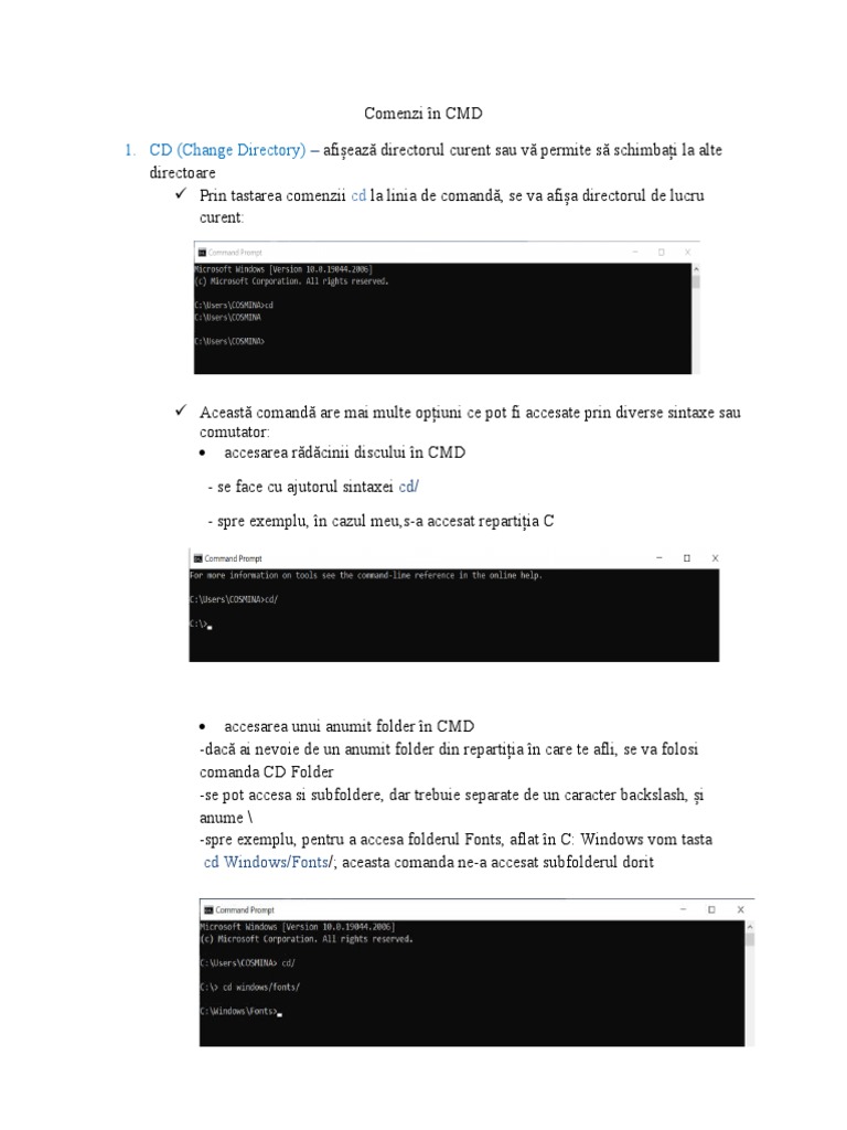 1. CD (Change Directory) – afișează directorul curent sau vă permite să schimbați la alte