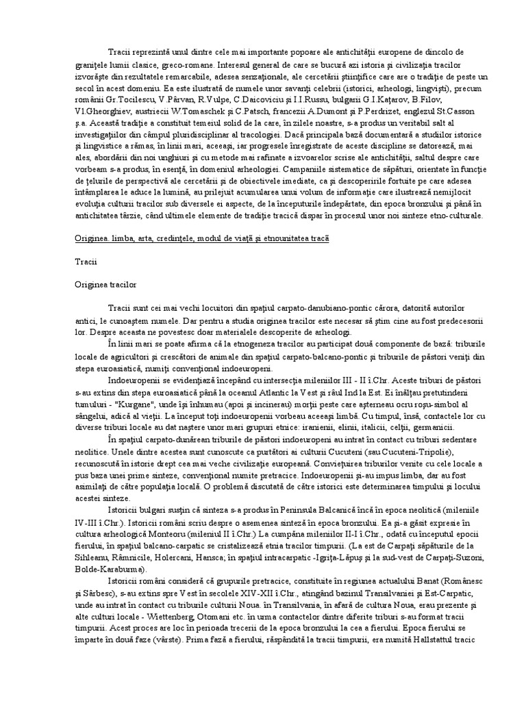Originea. limba, arta, credinţele, modul de viaţã şi etnounitatea tracã