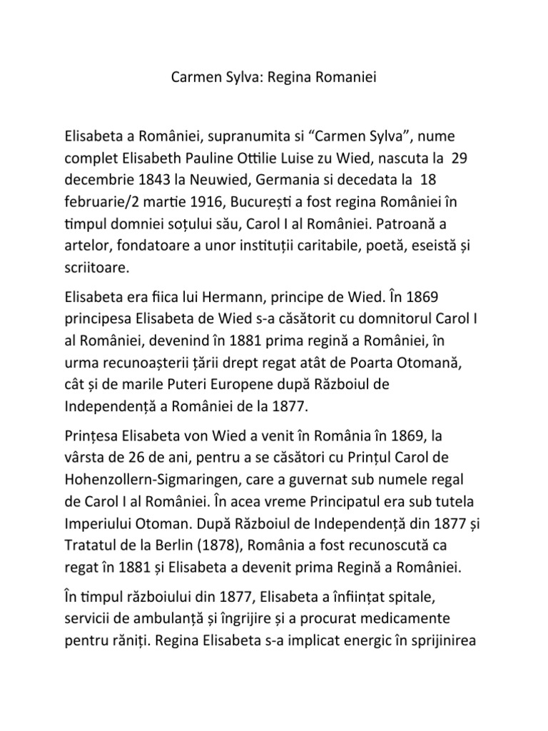 Elisabeta a României, supranumita si “Carmen Sylva”, nume