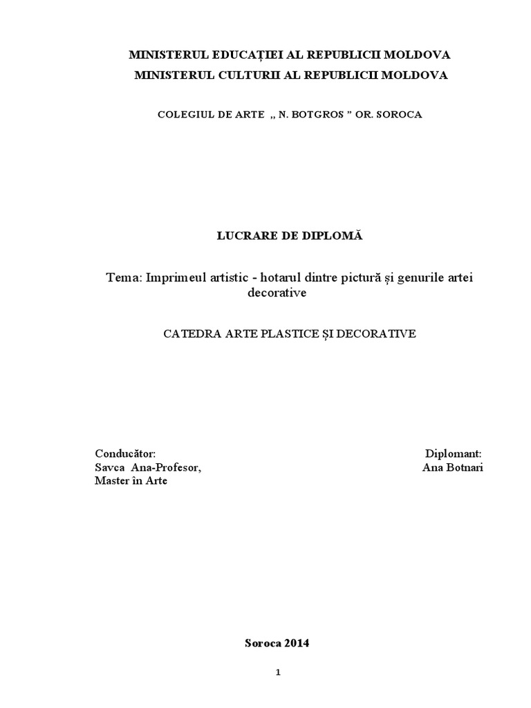 artistic la Facultatea de Arte Plastice şi Design a Universităţii Pedagogice „I.