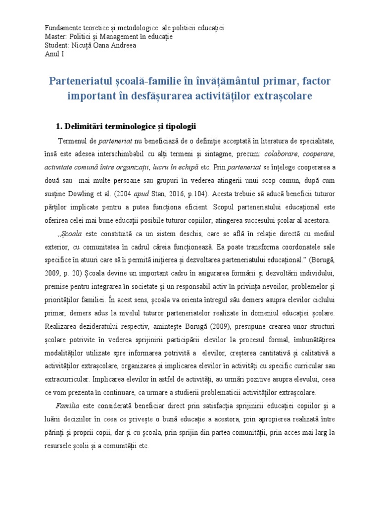 1. Borugă, B. (2009). ,,Parteneriatul educațional- Element important al reformei