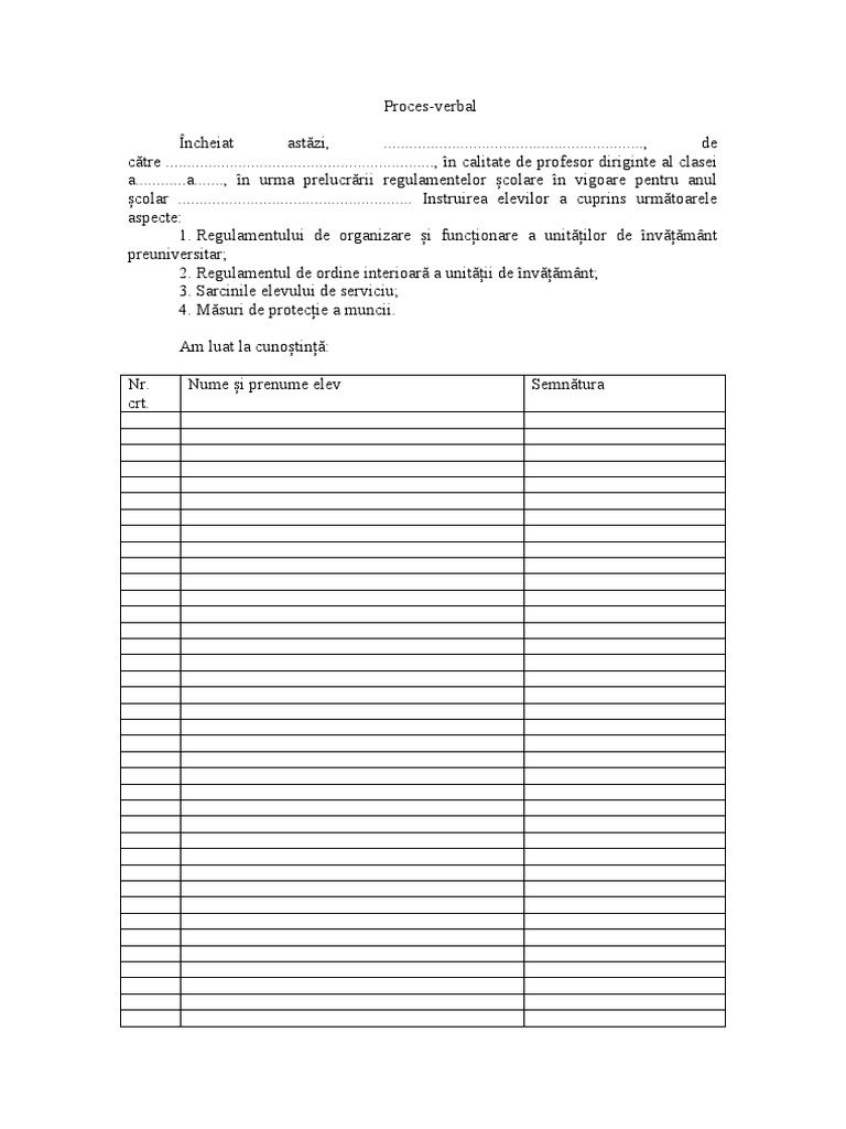 a............a......., în urma prelucrării regulamentelor școlare în vigoare pentru anul