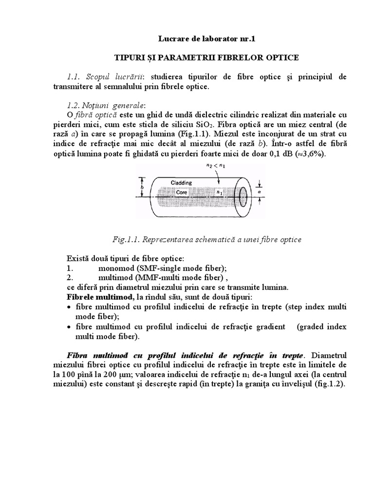 1.1. Scopul lucrării: studierea tipurilor de fibre optice şi principiul de