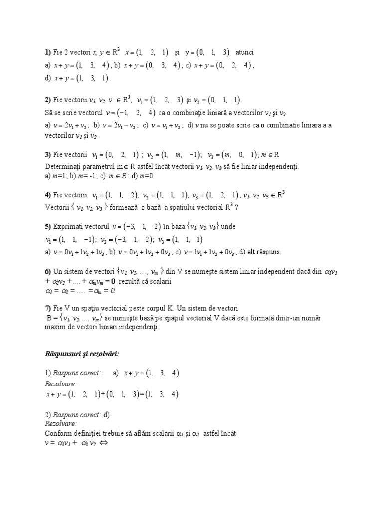 şi v = (0, p, p), unde p R nenul; c) v = (k, -h, -h), unde k, h R şi v = (0, –p, p), unde p R