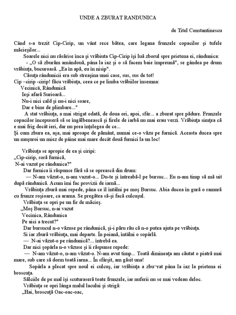 Cip –cirip -cirip! făcu vrăbiuţa, ceea ce pe limba vrăbiilor însemna: