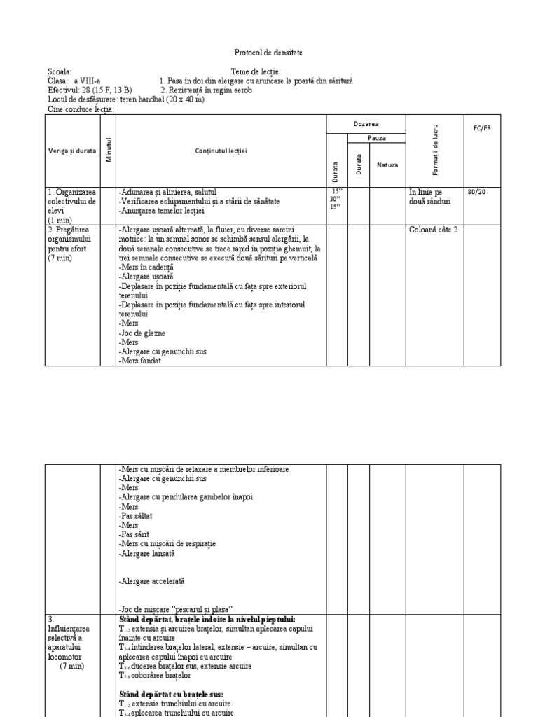 Efectivul: 28 (15 F, 13 B) 2. Rezistență în regim aerob