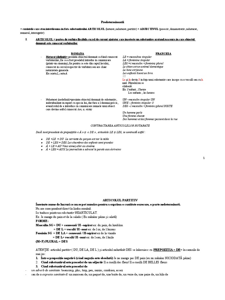 I. ARTICOLUL = partea de vorbire flexibila cu rol de cuvant ajutator care insoteste un substantive aratand masaura in care obiectul
