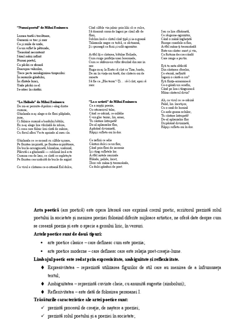 arte poetice clasice – care definesc cum este poezia;