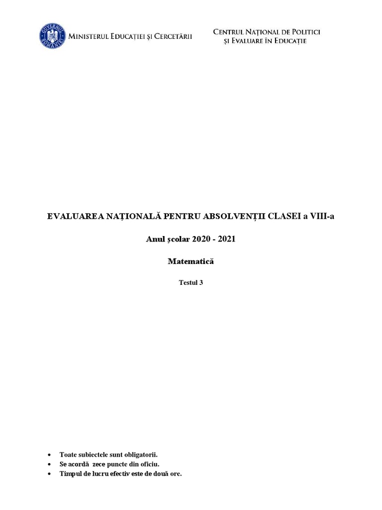 EVALUAREA NAŢIONALĂ PENTRU ABSOLVENȚII CLASEI a VIII-a