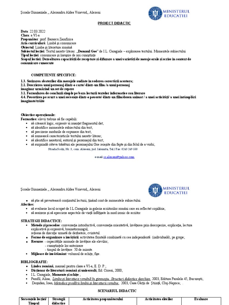 PROIECT DIDACTIC