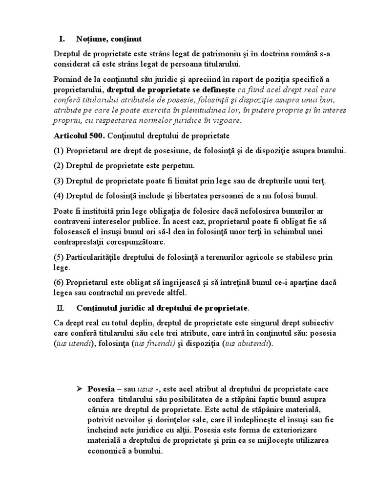 II. Conţinutul juridic al dreptului de proprietate.