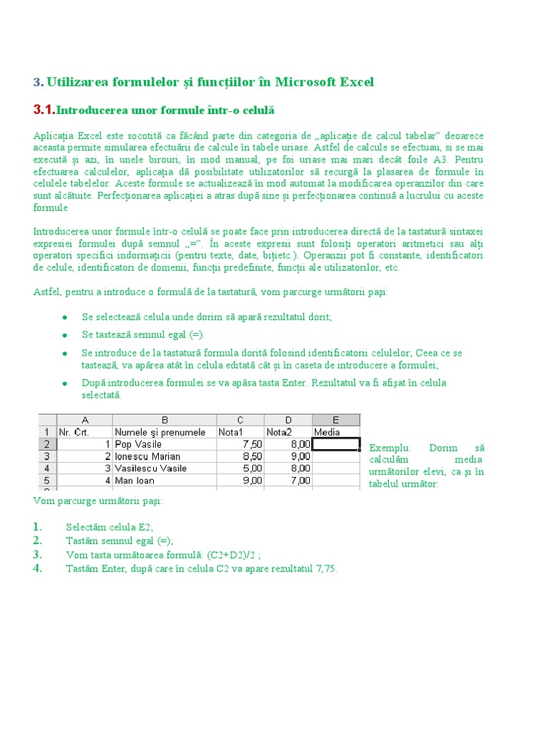 [Link] unor formule într-o celulă