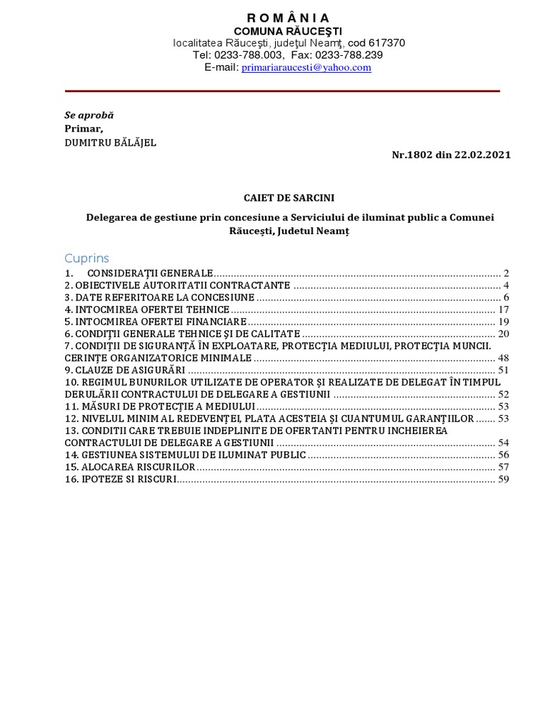 [Link] delegatară a serviciului de iluminat public este Primaria Comunei Răucești.