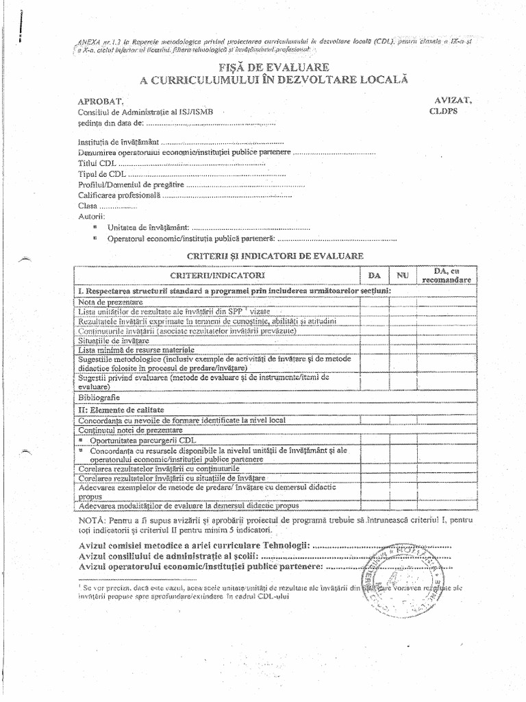 Avizul comisiei metodice a ariei curriculare Tebnolog