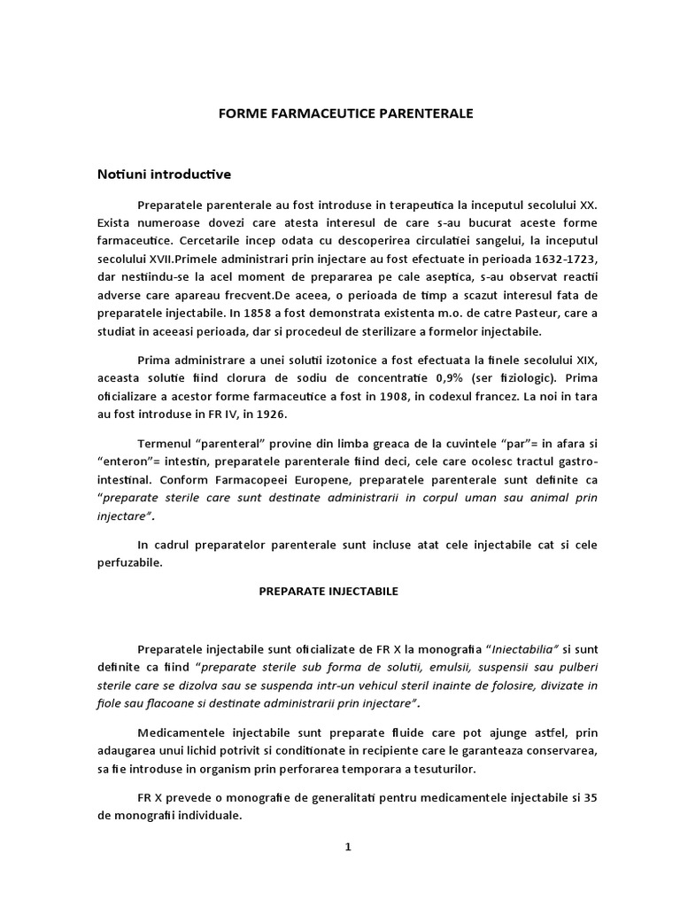 intestinal. Conform Farmacopeei Europene, preparatele parenterale sunt definite ca