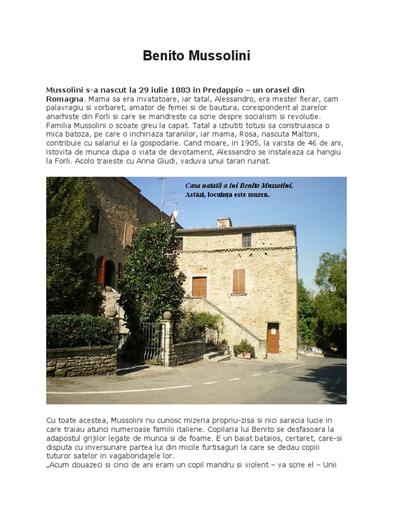 Mussolini s-a nascut la 29 iulie 1883 in Predappio – un orasel din