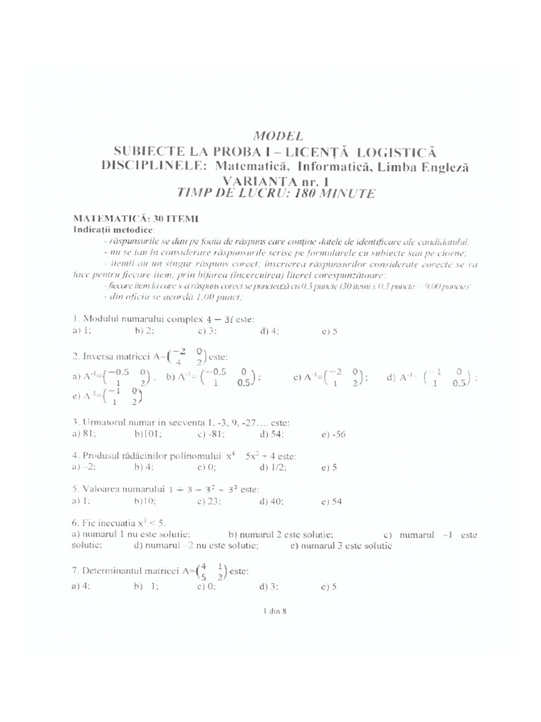 BIECTE LA PROBA I- LICENTA LOGISTICA