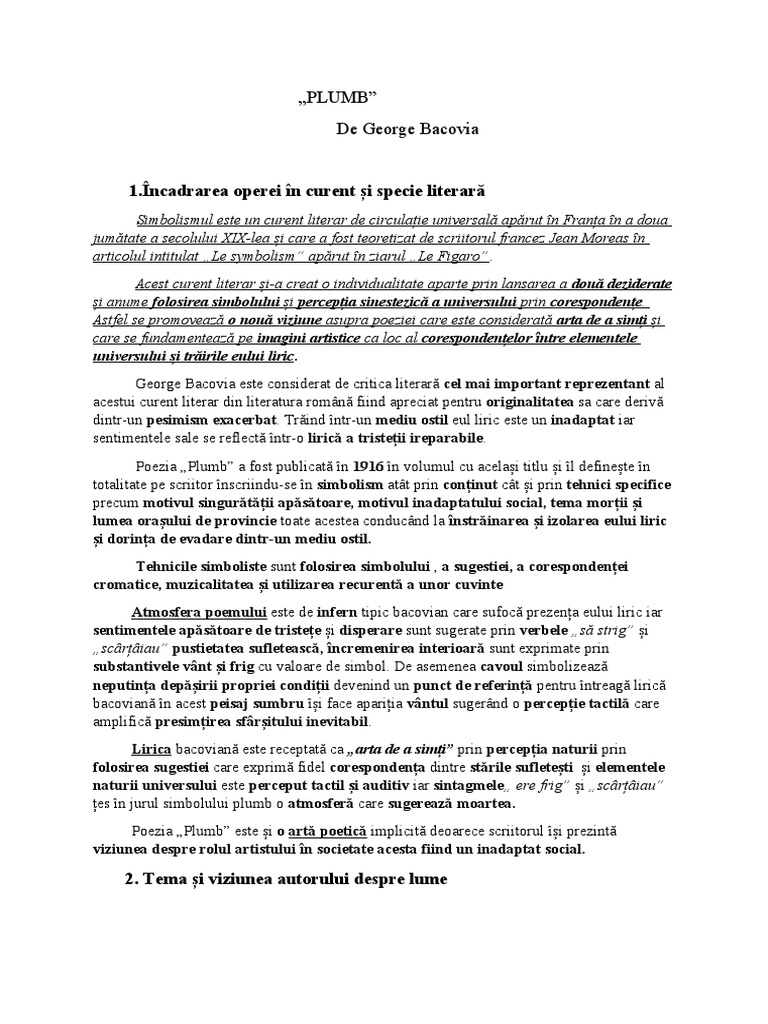 poezia „Plumb” se încadrează în estetica simbolistă.