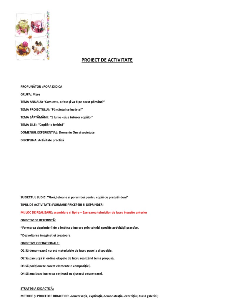 PROIECT DE ACTIVITATE
