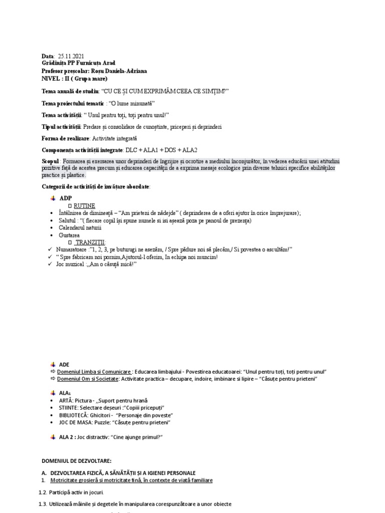 Componența activității integrate: DLC + ALA1 + DOS + ALA2