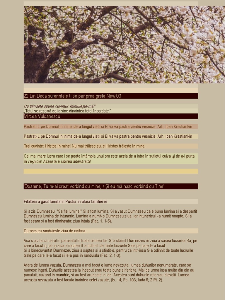 "'Doamne, Tu m-ai creat vorbind cu mine, / Și eu mă nasc vorbind cu Tine'. Acest dialog neamestecat, dar