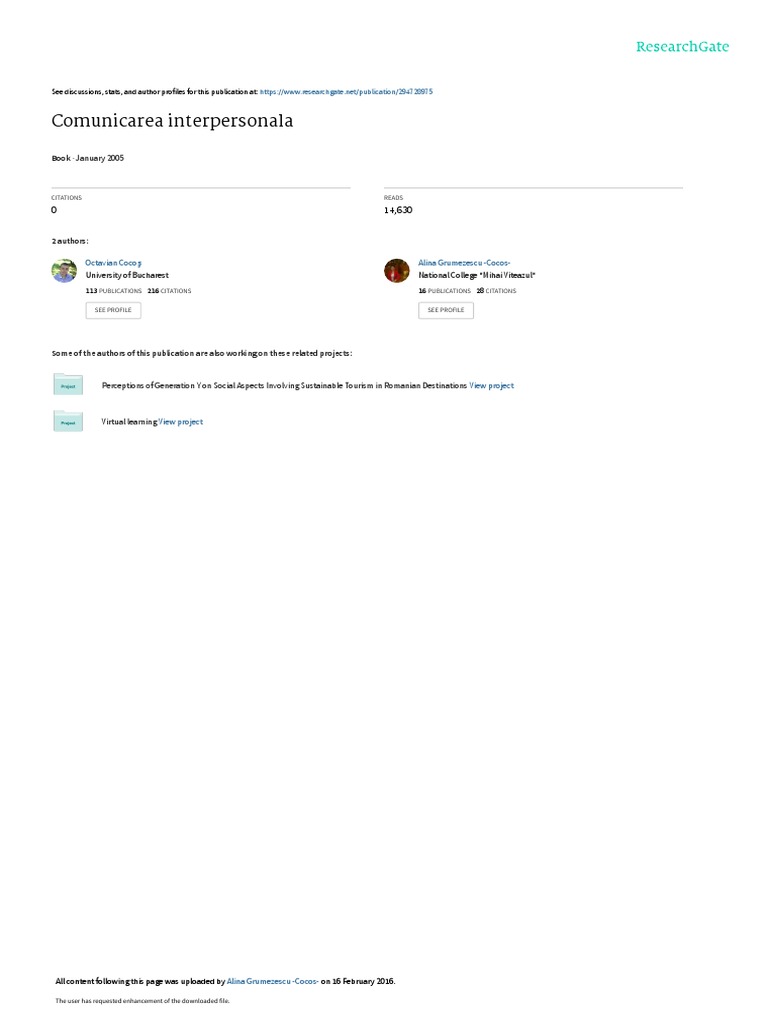 „Comunicarea reprezintă una din trebuinţele fundamentale, de ordin