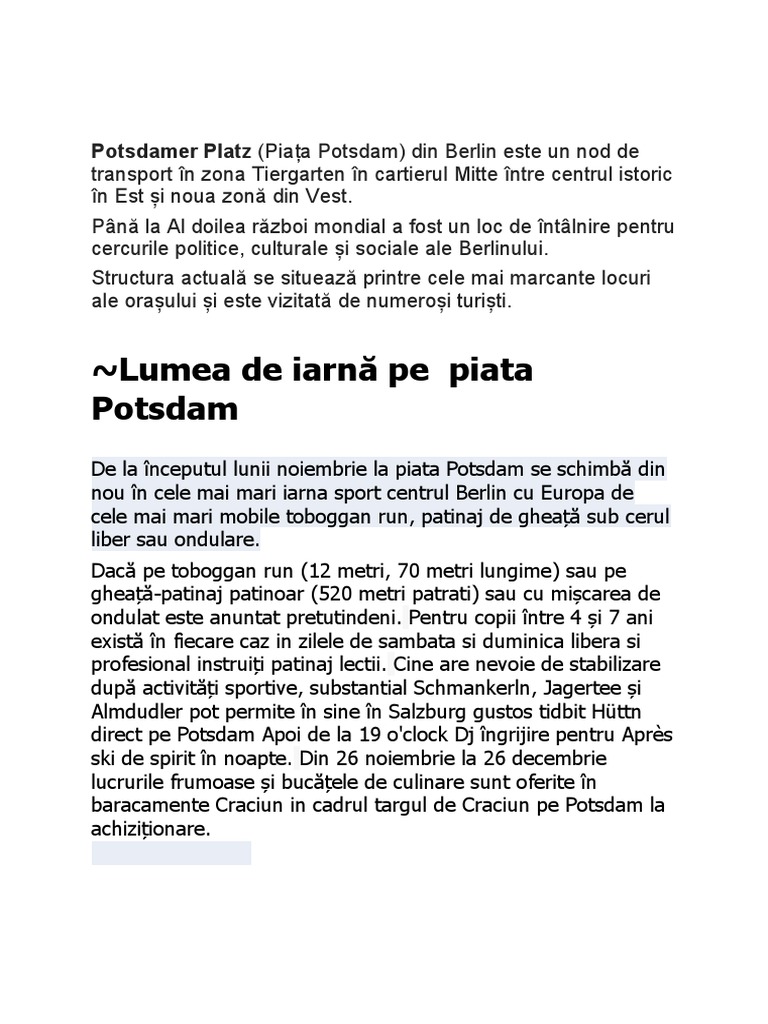 De la începutul lunii noiembrie la piata Potsdam se schimbă din