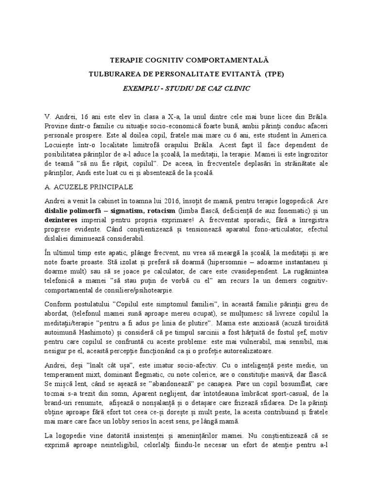 aprecieri negative, care debutează la vârsta de adult tânăr, se manifestă în diverse situații și