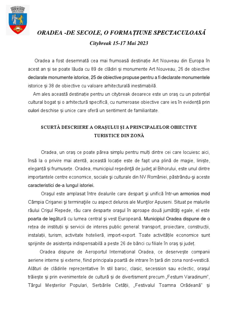 SCURTĂ DESCRIERE A ORAȘULUI ȘI A PRINCIPALELOR OBIECTIVE