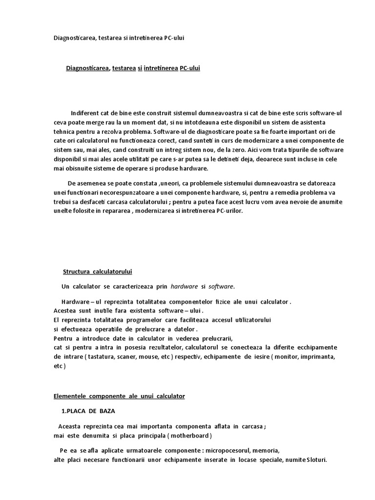 Diagnosticare Si Testarea PC