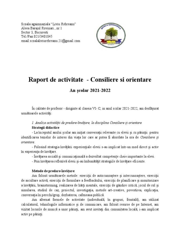 Raport de activitate - Consiliere si orientare