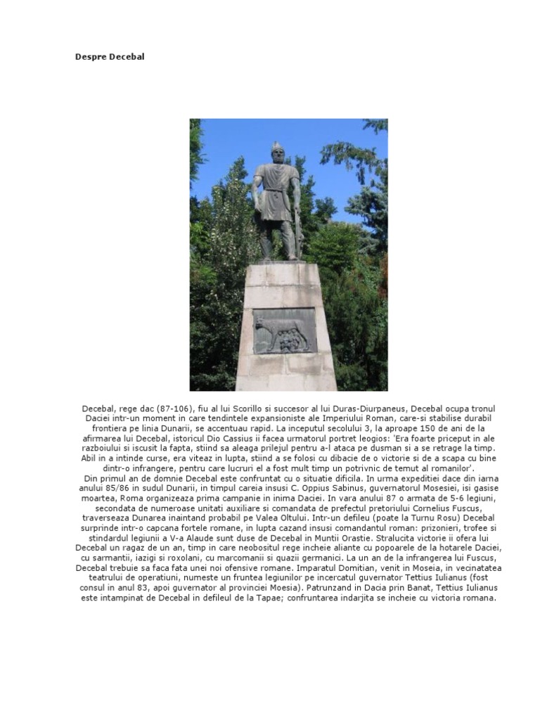 afirmarea lui Decebal, istoricul Dio Cassius ii facea urmatorul portret leogios: 'Era foarte priceput in ale