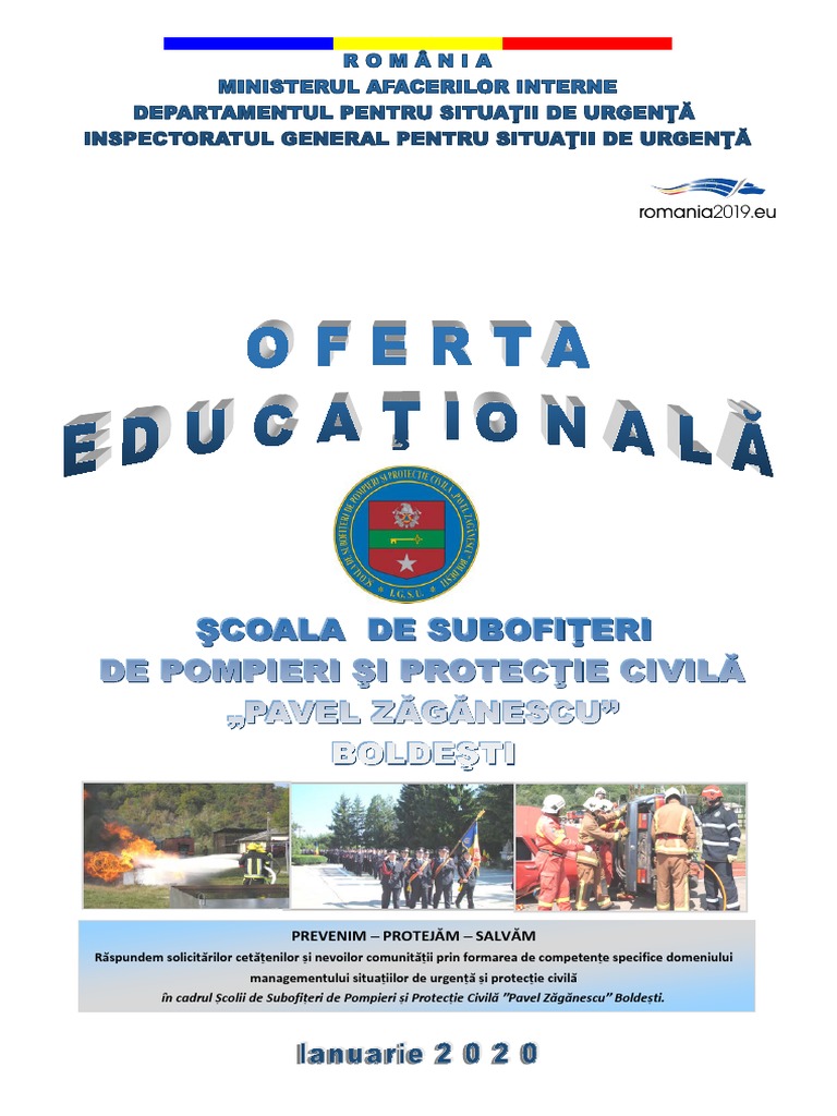 în cadrul Școlii de Subofițeri de Pompieri și Protecție Civilă ”Pavel Zăgănescu” Boldești.