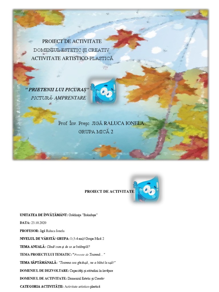 TEMA PROIECTULUI TEMATIC: ”Poveste de Toamnă…”